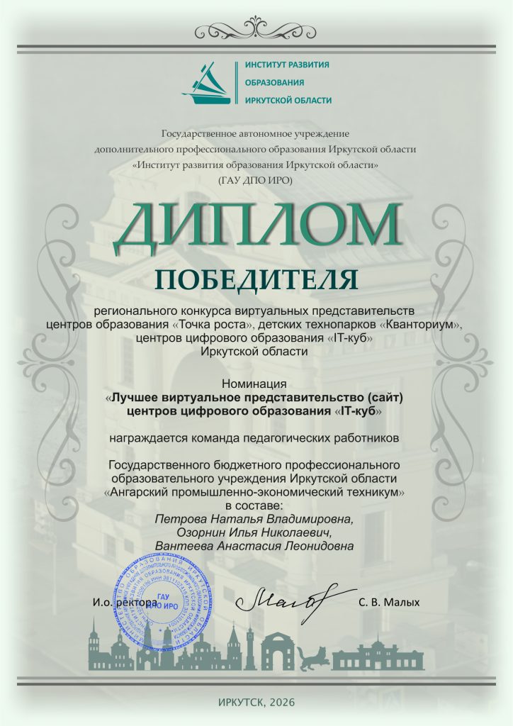 Центр цифрового образования детей «IT-куб.Ангарск» признан лучшим в номинации «Лучшее виртуальное представительство (сайт) центров цифрового образования IT-куб»!